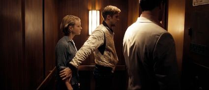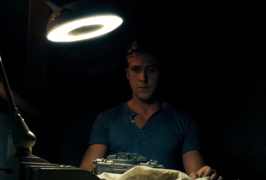There’s an early scene where Irene, Benicio, and Driver are going for a car ride after Irene’s car breaks down; Irene’s sweater is a deep red, but after she gains an attachment to Driver, the sweater comes off, showing a blue shirt. When they go back to her apartment, the sweater is back on, possibly to symbolize she can’t break away from the looming danger forever, but she can for a short time. The song playing during this scene backs up the claim, “A Real Hero”, by College and Electric Youth: the song starts when Irene’s sweater first comes off and fades away when the film cuts to see her wearing it. This scene uses blue to show warmth for Driver, along with others.